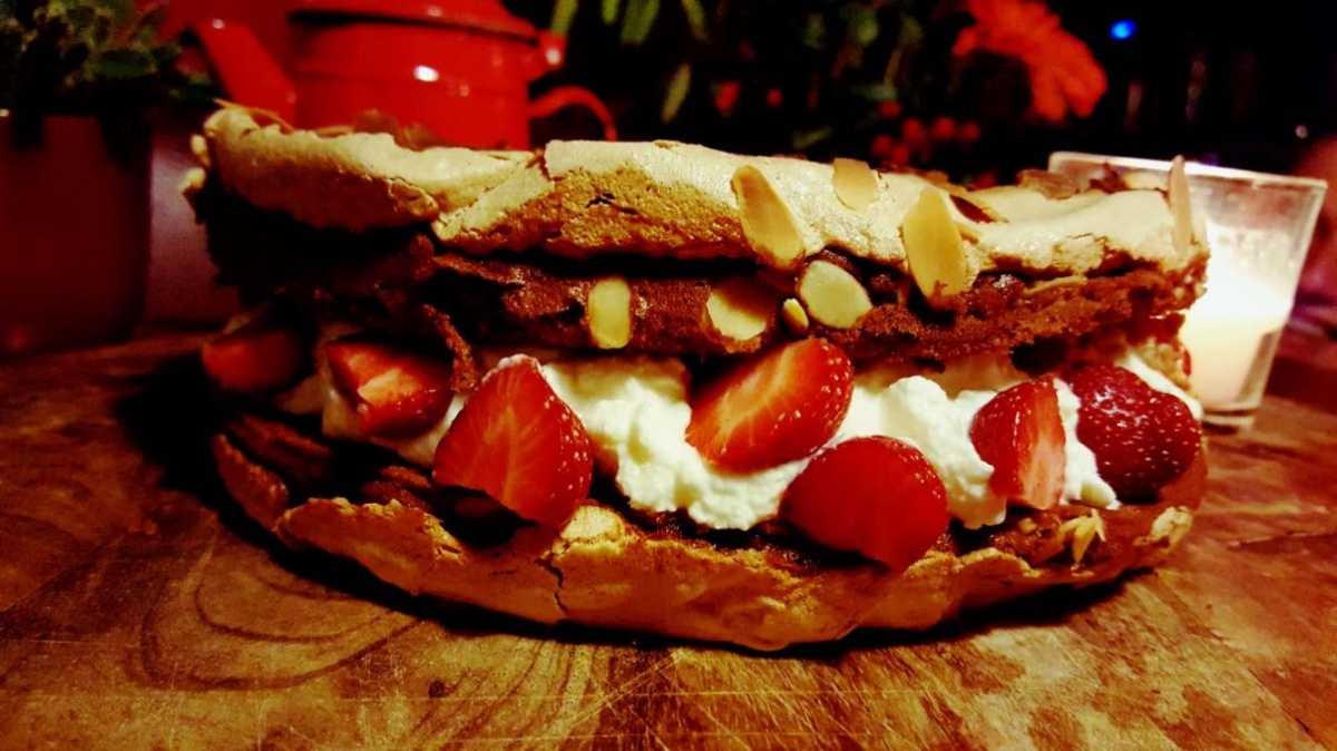 This is my gluten-free strawberry dutch cocoa twist pie.. My sister is in the background holdin' the flowers :-) We love to try x