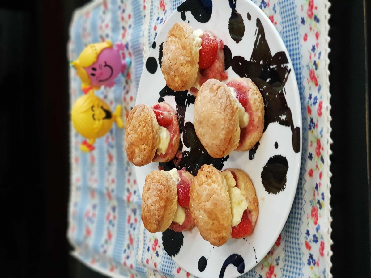 Its tasty! Sugar coating adds the crisp texture and the sweet strawberries are refreshing! I placed the dough in the fridge for 2 hours before baking. Its like making scones but with sttawberries n cream which make it interesting.