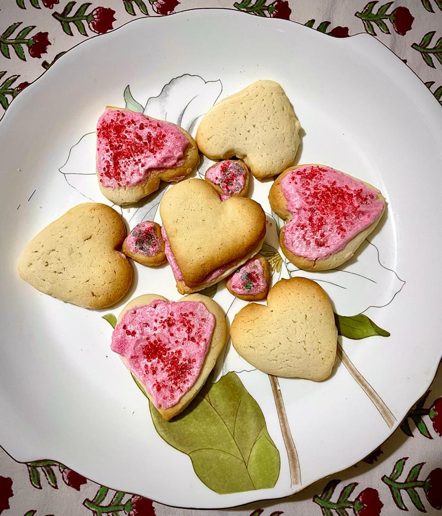 Rosewater hearts baked for Valentine’s Day for my husband. We devoured them with a cup of coffee. Amazing with a cup of coffee.