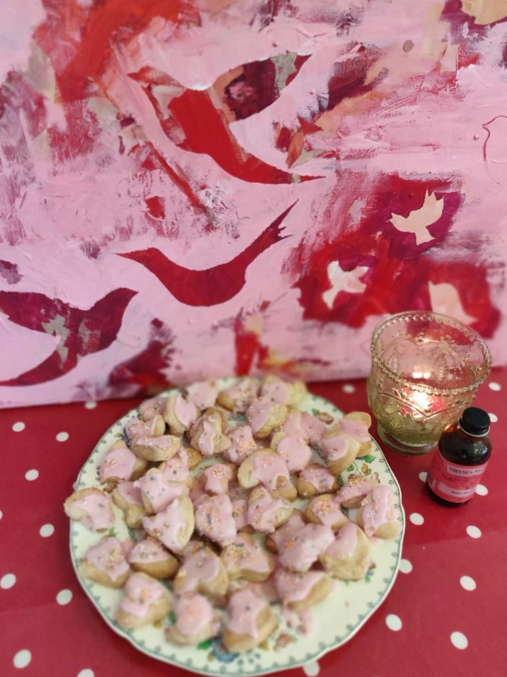 Subbed for freefrom butter and flour- worked well! Cleaning the walls down from an electric mixer accident was well worth it in the end, loved the rosewater taste.