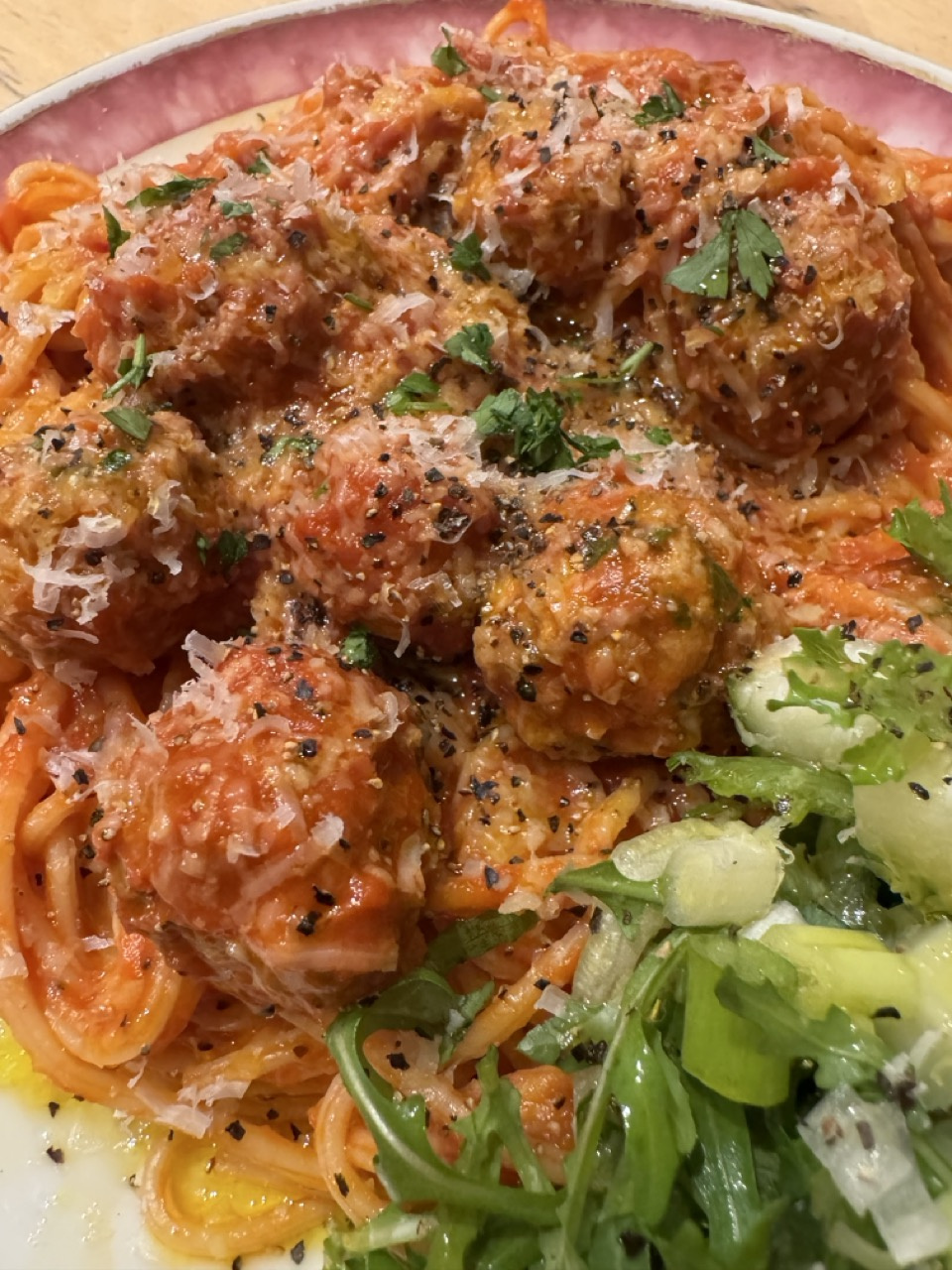 Nigella Bites, Spaghetti with Meatballs is a family favourite since 2002, delicious family dinner on the table in 30 minutes - what’s not to love?