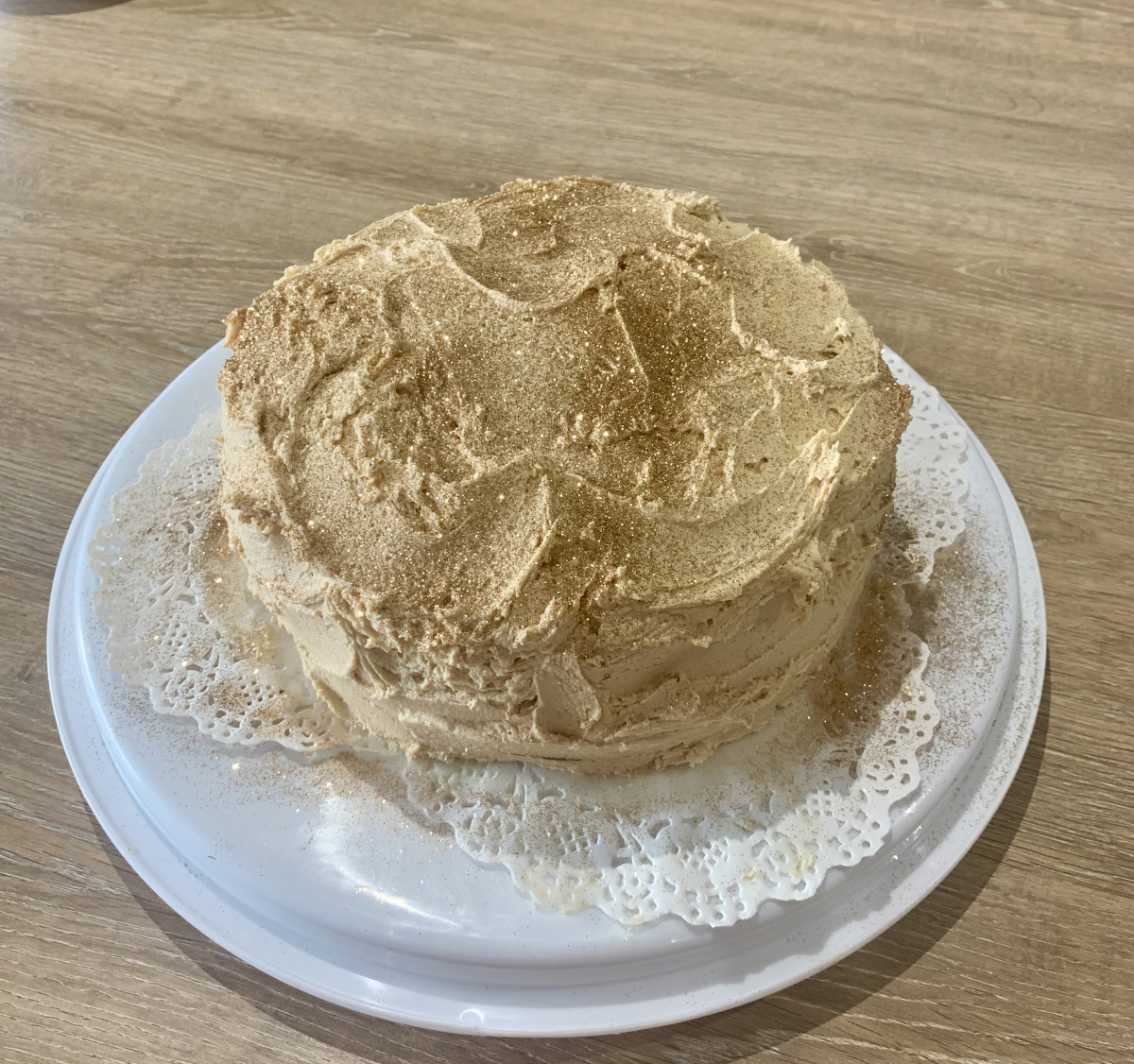 Today I made Nigella’s Chocolate Peanut Butter Cake, requested by our eldest granddaughter for her 16th birthday. We will be taking it with us tomorrow from our home in Northumberland, down to Leeds in West Yorkshire for our family celebrations. As you can see, I decided to dust the cake with edible gold glitter rather than the crushed peanuts as I thought it made it more ‘celebratory’. The photo doesn’t really do it justice but I’m immensely proud of it and I know the family will love it.