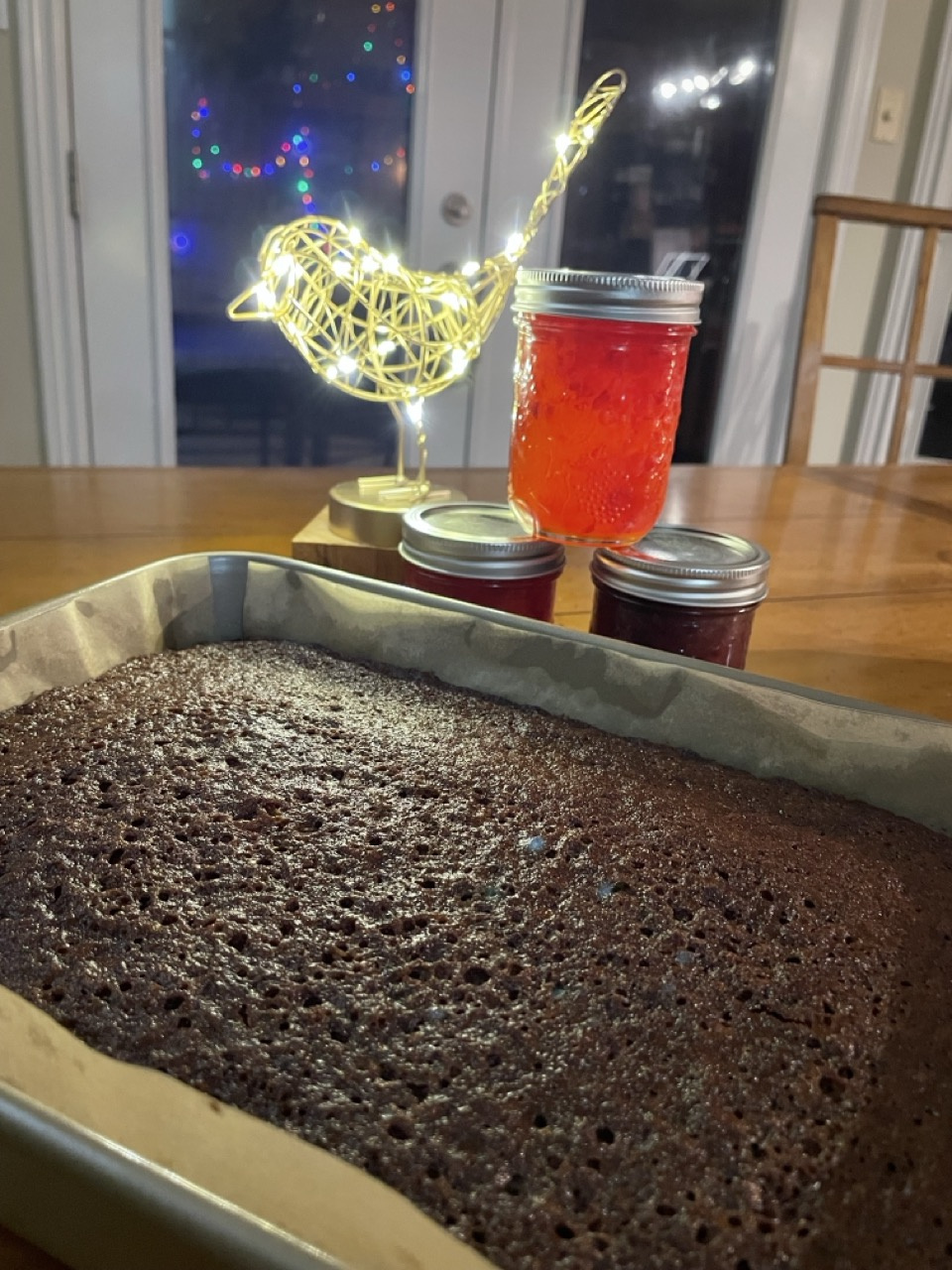 Today I decided to get ahead by baking something to go in the freezer. After checking what I had available in the cupboard I made Sticky Gingerbread from Nigella Christmas. Super simple to make and as promised, the house smelled amazing! Not sure this will make it to the freezer! (The Chilli Jam is in the picture because I can’t get over how pretty it is!)
