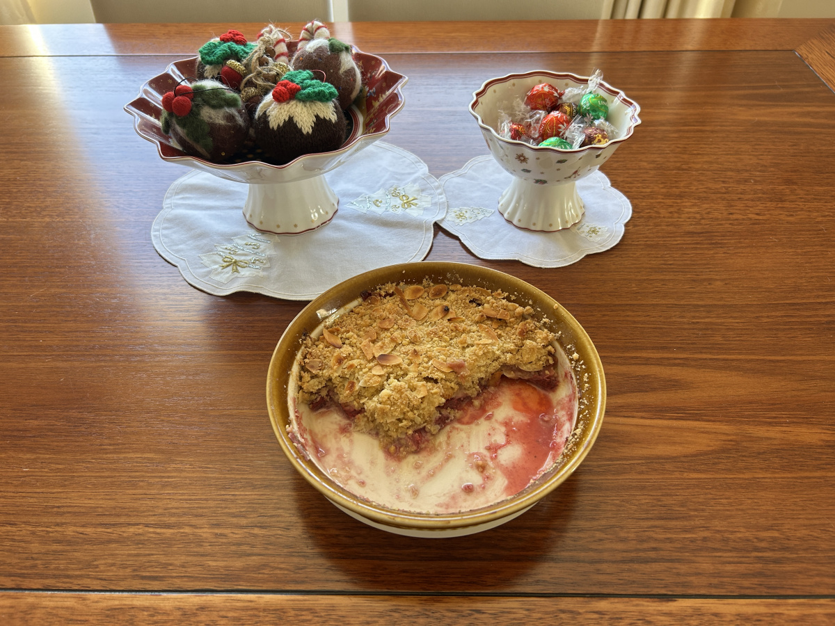 One of our traditions for the festive season Down Under is to bake Nigella's Strawberry and Almond Crumble. My mum makes it every year and I am posting to surprise her. This crumble is so delicious that half had already been devoured before I could photograph it!!