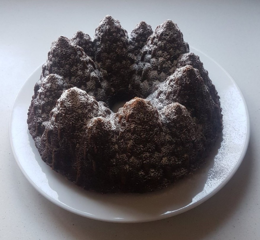I made the cider and five spice bundt cake and used the forest tin to bake it. With just a sprinkling of snow on top it not only looks kinda dark and mysterious, it has an intriguingly delicious taste.