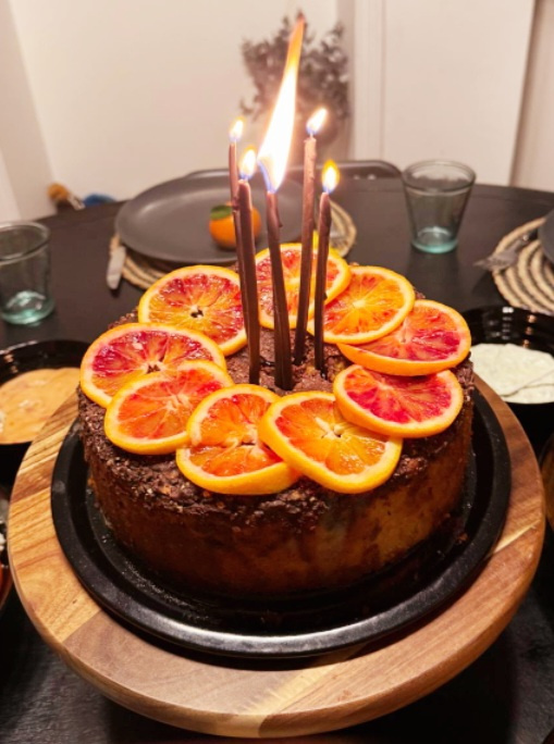 Nigella's Clementine Cake was the perfect cake to celebrate my Sister's birthday. I had to use Blood Oranges as Clementine season sadly over...a hint of vanilla, orange essence with some brown sugar added warmth and subtle flavours. The addition of grated Dark Orange and Almond just as the cake came out of the oven was from Nigella's recipe in Green & Black's cookbook...a lucky find!