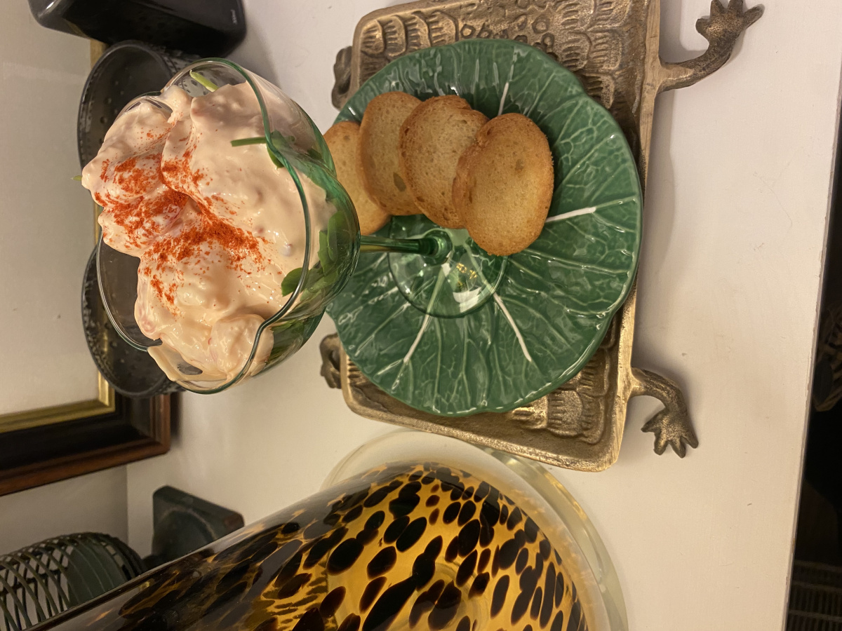 Nigella’s prawn cocktail from her Feast cookbook with a glass of cold bubbles elevates a Friday night!
