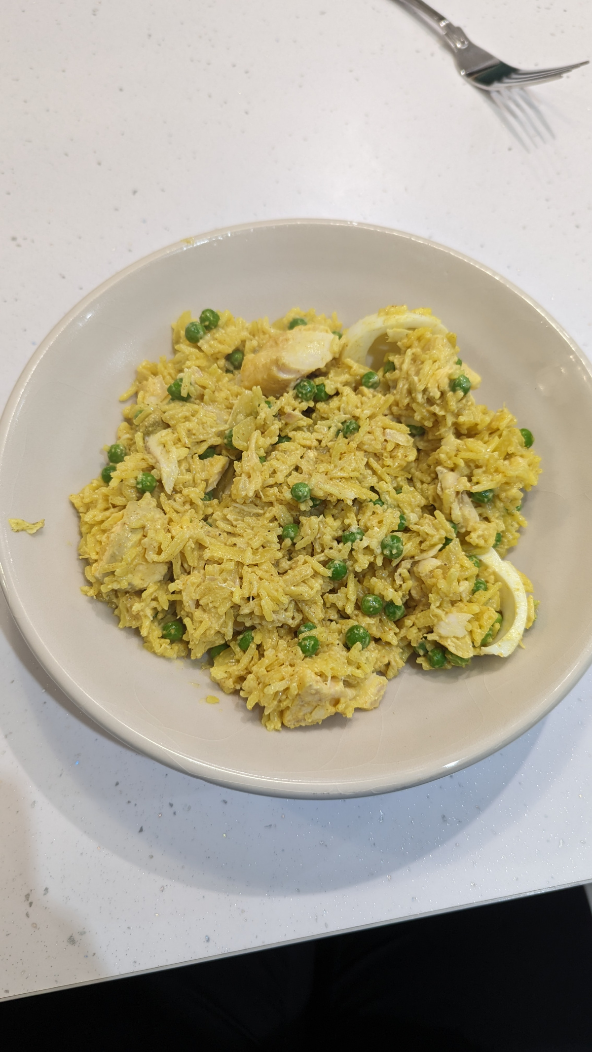 Kedgeree risotto I made following Nigellas recipe. I followed this recipe and which has everything apart from the fresh parsley! I always add peas to my kedgeree which you can see in the photograph! it's perfect for any season!